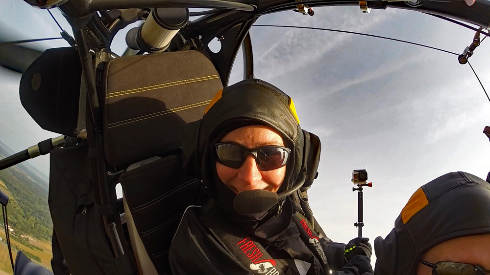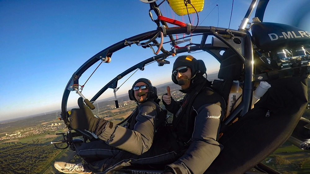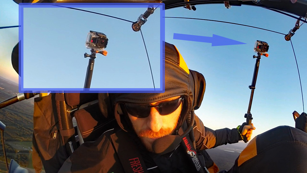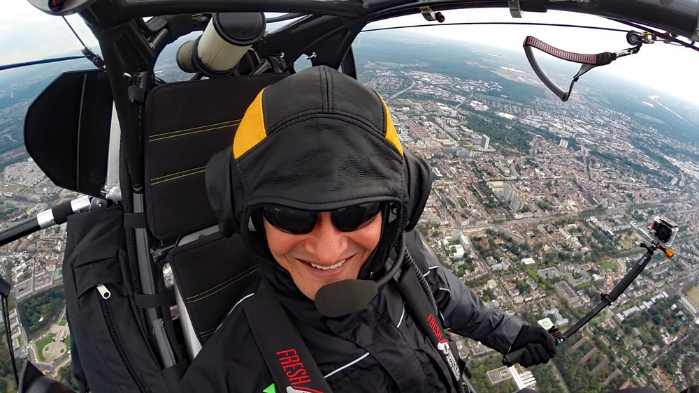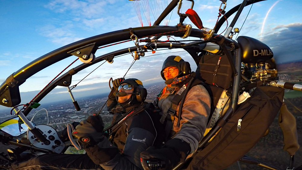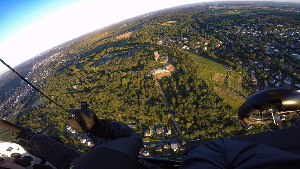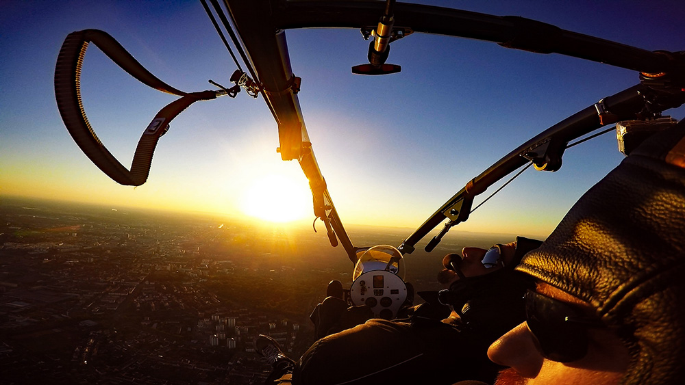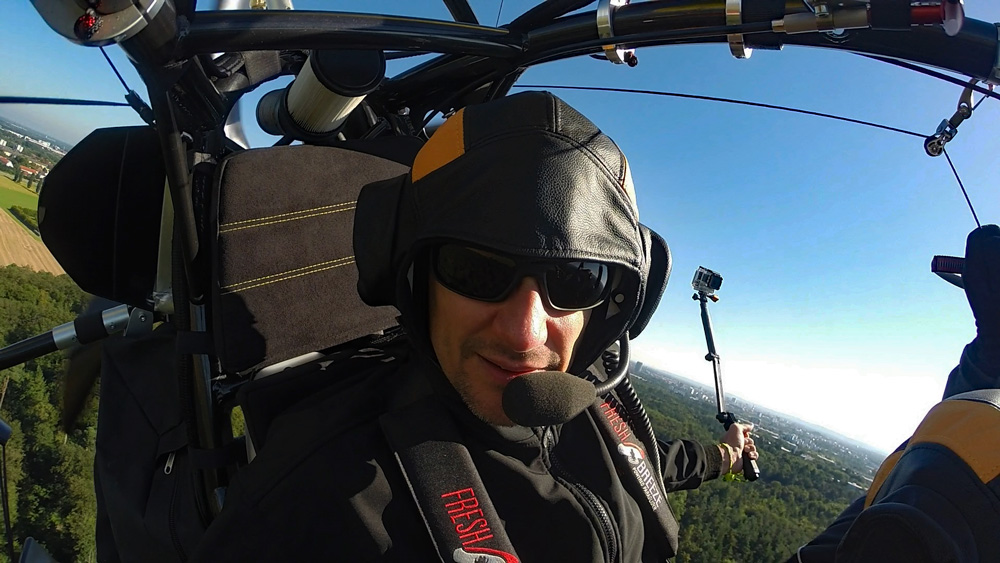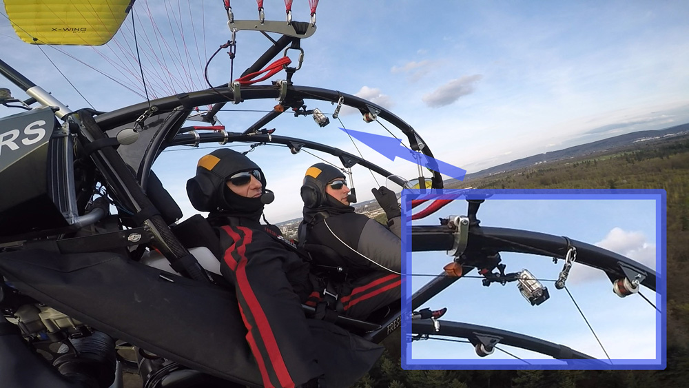 Der Rundflug wird mit bis zu drei Actionkameras gefilmt. Eine Kamera ist im Frontbereich des Fluggerätes befestigt und die zweite Kamera ist auf den Fluggast ausgerichtet. Eine weitere Option ist eine Handhalterung mit der wir zusammen spektakuläre Aufnahmen während des Fluges machen können. Auch Bodenaufnahmen sind hierbei möglich. Aus diesen Aufnahmen exportieren wir für Sie Erlebnisfotos in HD-Qualität.